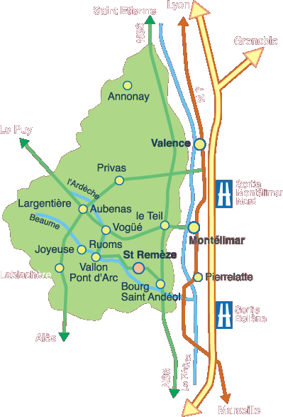 PAR TRAIN: ligne TVG depuis ValenceTGV puis bus jusqu'à Vallon Pont d'Arc. Aéroport: Marseille-Provence ou Lyon St Exupéry.